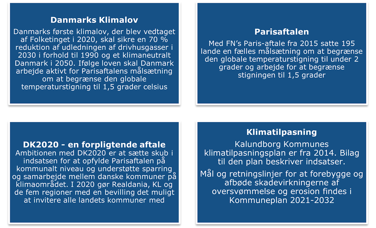 Figur 1 Kalundborg Kommunes klimaplan har ophæng i danske og internationale klimamålsætninger