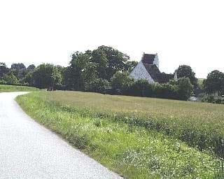 Det åbne agerlandskab trænger sig helt ind til kirkeområdet, og giver generelt en flot forståelse, af kirkens landskabelige indplacering.