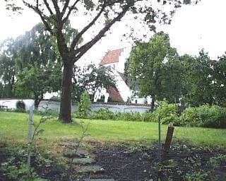 Bag kirken dannes om Smedevænget et sympatisk intimt byrum, hvor haver og kirkeområde sammen understøtter landsbystemningen.