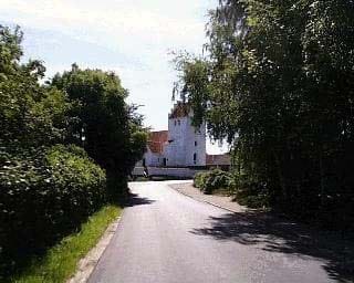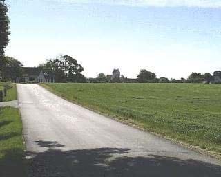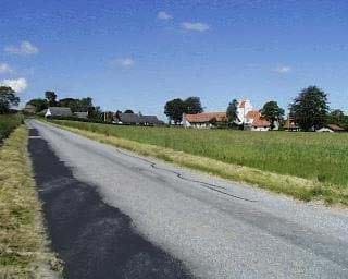 Kisserupvej, ankomst fra nord nordøst: Kirken er det eneste element der indikere, at der her gemmer sig en by.
