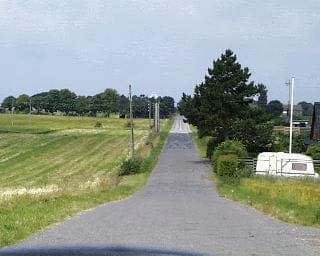 Ved ankomsten til landevejen træder kirken i karakter i et flot frontperspektiv.
