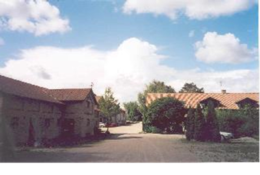 - Det helstøbte anlæg med gårdens bygninger, gårdsplads samt kirken