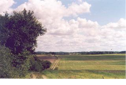 Udsigt fra vest mod øst. Grusvej tilhørende Avnsøgård.