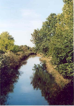 Kanalen øst for Saltbæk Vig, på grænsen til Alleshave, syd for Langebjerggård. Set fra sydøst.