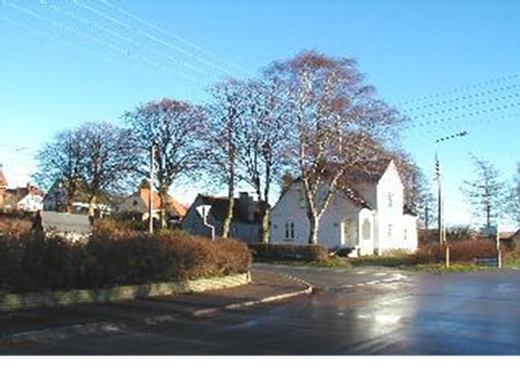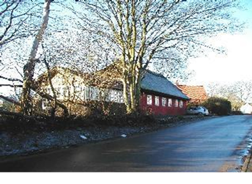 Landsbyens ældste skole umiddelbart syd for kirkegården, fra vest.