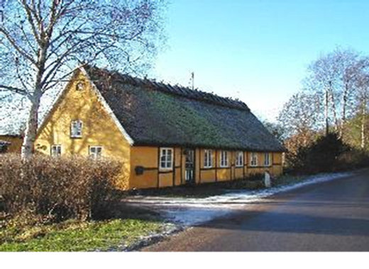 Mindre trelænget gård over for den yngre skole på Kongstedvej i den østlige, nyere del af landsbyen, fra øst.