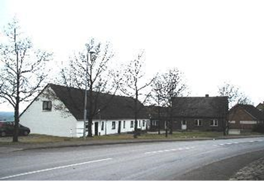 Det tidligere fattighus skråt over for kirken, fra øst.