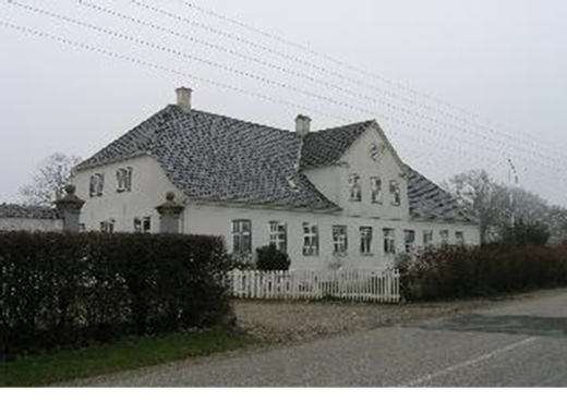Værslevs middelalderlige sognekirke og præstegårdens portfløj, fra sydøst.