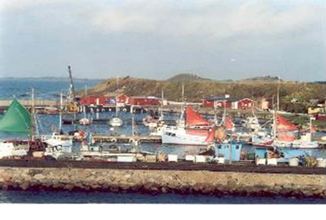 Fiskerihavnen, set fra færgen mod nordvest. Er af stor miljømæssig betydning.