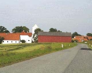 Husene i næromgivelserne er generelt fint afstemt efter kirkens skala, hvilket understøtter landsbykarakteren.