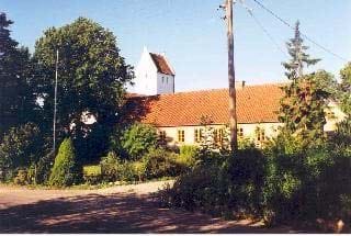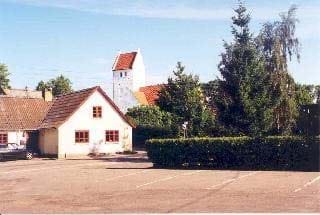 Ankomst til kirken ad Madesøvej: Kirken kommer til syne inde i byen, gemt delvist af