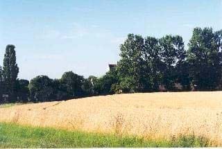 Set fra Hallebyorevej: På den anden side af Åmosen markerer kirken sig på bakken som et vigtigt element i landskabet.