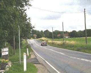 Fra Kalundborgvej i øst tegnes ankomsten til Særslev by fint.