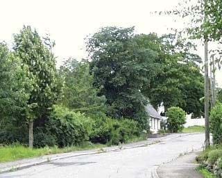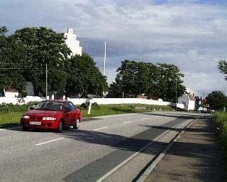 Fra Nykøbingvej i nord er der en potentiel god indsigt til kirken, men desværre forhindrer