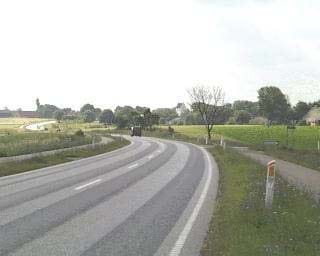 Ved ankomsten til landevejen træder kirken i karakter i et flot frontperspektiv.