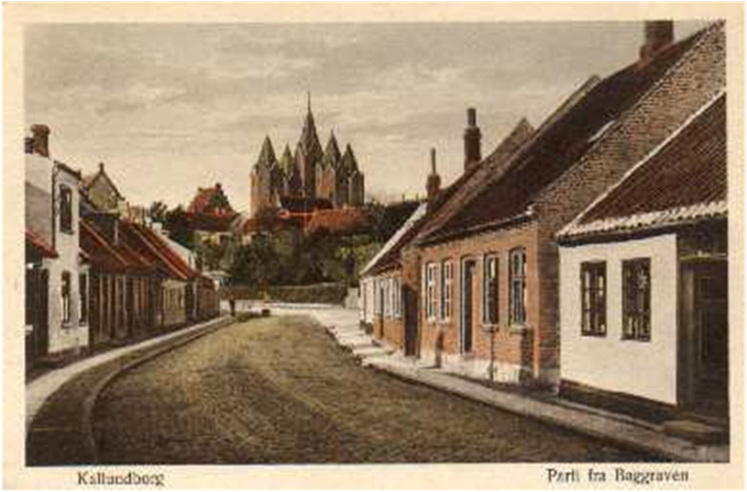 Bag Slotsgraven 1906. Der lå på denne tid et hus på