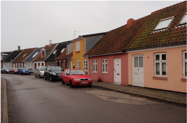 gaden. Husfacadernes farvevariationer giver stemning i det visuelle facadeforløb.