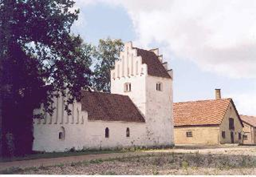 - Det helstøbte anlæg med gårdens bygninger, gårdsplads samt kirken