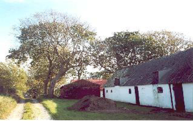 Gl. bondegård på Kongstrupvej 20. Måske den bedst bevarede på hele øen. Bruges til sommerhus. Opført i grundmur og bindingsværk. Fra ca. 1790 og fremefter. Her ses parti af østlig længe ud mod Kongstrupvej. Fin gammel ladeport.