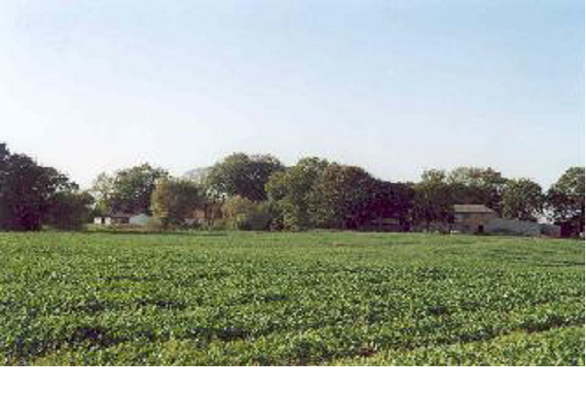 Kig fra engen ved kysten mod landsbyen. Set fra nordøst.