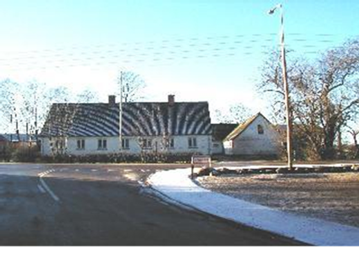 Mindre trelænget gård over for den yngre skole på Kongstedvej i den østlige, nyere del af landsbyen, fra øst.