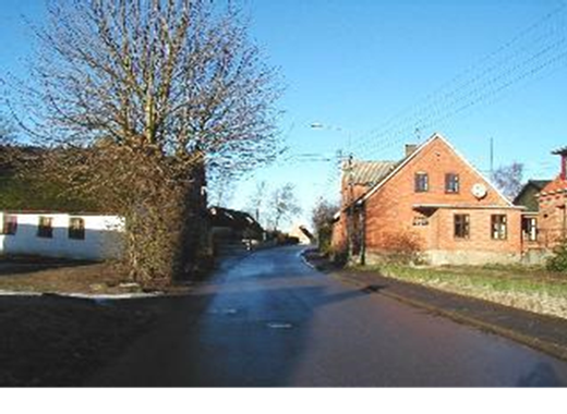 - Den lange bygade med de tilbageværende gårde, smedjen og smedens bygninger, andre ældre gadehuse i bindingsværk samt grundmurede beboelseshuse og forretninger