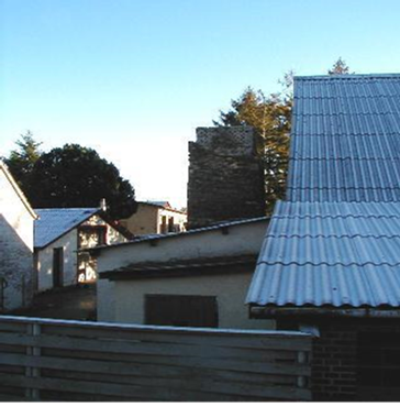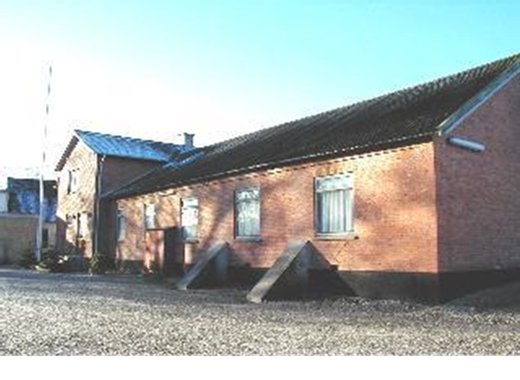 Landsbyens forsamlingshus bag mejeriet mellem den nyere del af landsbyen og den gamle, fra øst.
