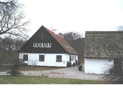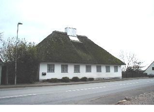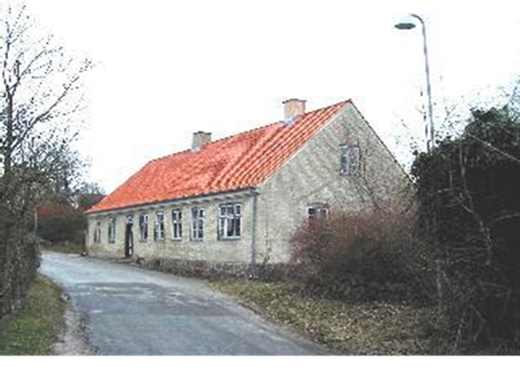 Den tidligere skole ligger over for præstegården, fra vest.