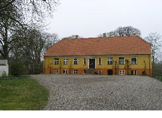 Værslevs middelalderlige sognekirke og præstegårdens portfløj, fra sydøst.