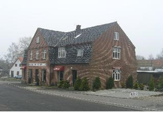 Den tidligere Værslev Brugsforening på hjørnet af bygaden og Langemosevej, fra nordvest.