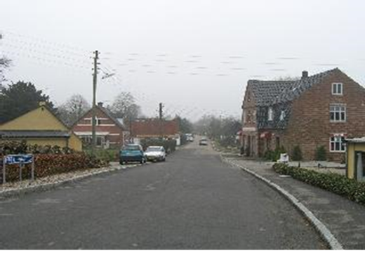 - Erhvers– og byudvikling samt opførelse af tekniske anlæg, som i omfang og skala ikke harmonerer med de nyværende bebyggede og ubebyggede arealer eller som slører de historiske strukturer i og omkring landsbyen