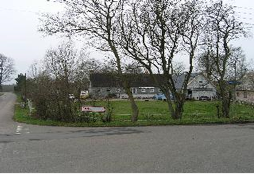 Ombygget frugtpakhus mellem villa og frugtplantage ved Værslevvej, fra vest.