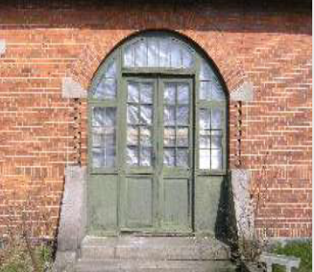 Gørlev Station, hovedindgangen med smukke murdetaljer og fint dørparti, set fra vest.