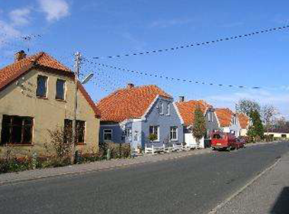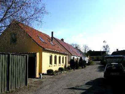 Små villaer på en af de små gader (Duemosevej) på sydsiden af Algade, set fra nord.