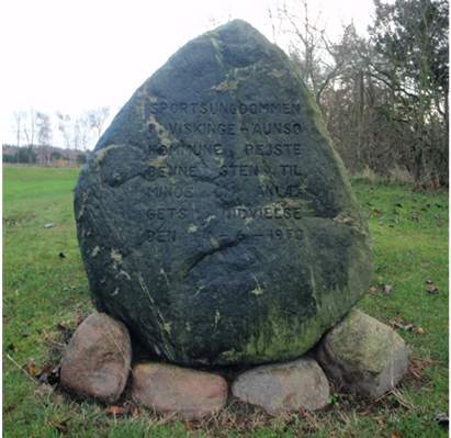 2012, Sportsungdommen i Viskinge-Avnsø Kommune rejste denne sten til minde om anlæggets indvielse 4.6. 1950.