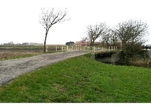 Den ældre af de to broer over (Nedre) Halleby Å, der giver adgang til holmen, der har rummet vikingetidsbebyggelsen, fra syd.