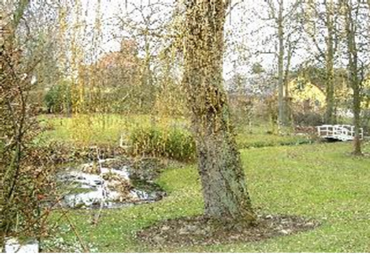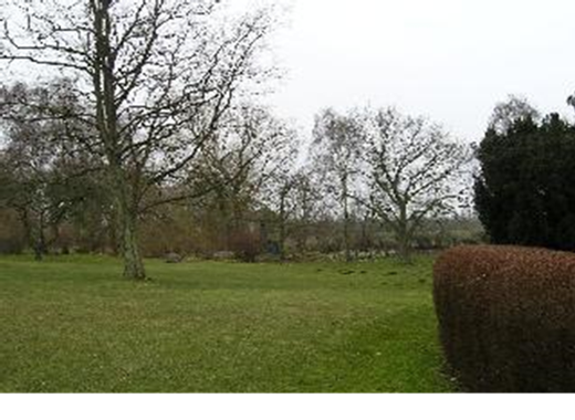 Præstegården har en stor, romantisk have med et lille vandløb og bro, fra sydøst.